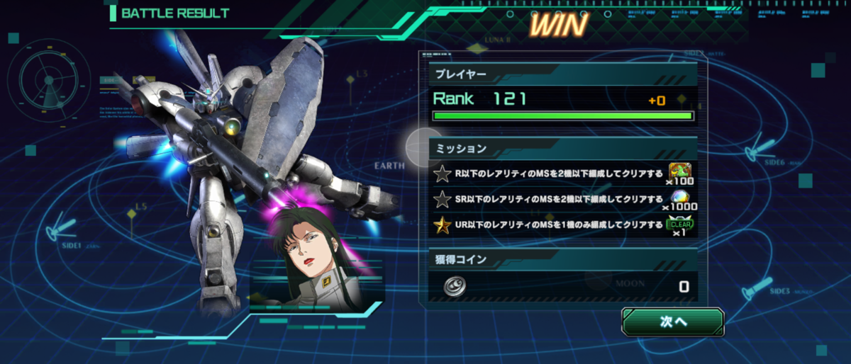 ガンダムやサイコミュシステム高機動試験機は楽勝。ガトー専用リック・ドムは負けることはなさそうでしたが、時間ギリギリ。僅か数秒のタイミングでクリア。G-3ガンダムは結構負けそうでしたがこれもクリア。